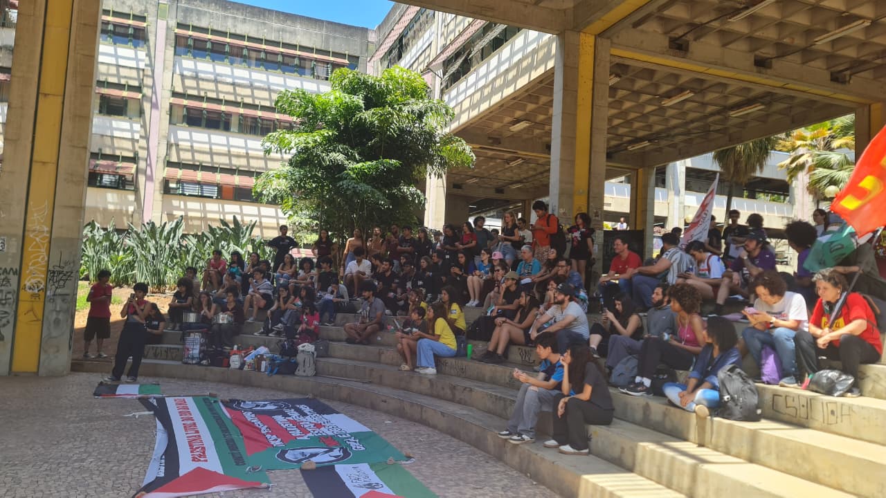 No dia 2 de outubro, estudantes de diversos cursos da UFMG se reuniram na Faculdade de Filosofia e Ciências Humanas para exigir a ruptura das relações acadêmicas com instituições israelenses. O ato aconteceu no dia seguinte à interceptação das embarcações da Flotilha Sumud, e em uma data próxima a do infeliz aniversário de 2 anos do início da nova fase do genocídio palestino, o que o tornou ainda mais significativo. A atividade deu sequência a mobilização da vigília de 24h Pela Palestina e Pelas Cotas Trans, realizada no dia 15 de setembro. É necessário que a produção de conhecimento das universidades não seja disponibilizada para entidades de ensino sionistas. E, para tal, é fundamental que o movimento estudantil se mobilize para cobrar de todas as reitorias um posicionamento incisivo e efetivo de combate ao sionismo. Somente um movimento organizado massivo alcançará o rompimento de relações acadêmicas, como fizeram os estudantes da Unicamp e da UFF.