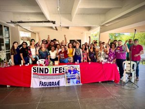 O companheiro Babá, veterano do movimento trotskista no Brasil, dirigente nacional da CST e também ex-dirigente da FASUBRA, foi um dos oradores em nome de nossa organização.