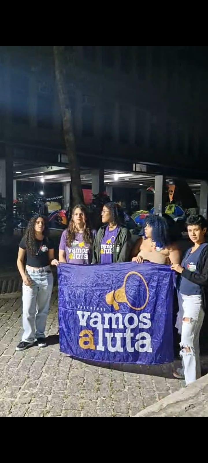 Realizamos um acampamento estudantil em apoio à Flotilha Sumud e em repúdio ao convênio da UFF com uma universidade israelense, enfrentando bravamente o frio e os desconfortos dos paralelepípedos. O esforço coletivo resultou em uma vitória importante: o rompimento do convênio da UFF com a Universidade de Ben Gurion.