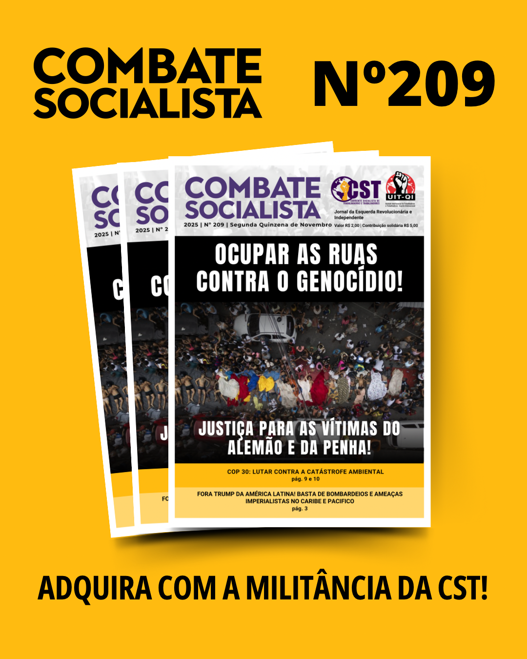 A CST é uma organização socialista revolucionária e independente, seção no Brasil da UIT-QI. Defendemos a unidade dos revolucionários e revolucionárias. Lutamos por um governo da classe trabalhadora, sem patrões, e por um Brasil socialista. Seja militante: participe das reuniões e se organize para atuar no seu sindicato, DCE, movimento de mulheres, ambiental, de negros e negras. Participe de nossa campanha financeira e ajude a manter esse projeto revolucionário. Divulgue este jornal no seu local de trabalho, estudo, entre amigos e familiares. Traga suas ideias, venha debater e fortalecer a proposta da esquerda independente.