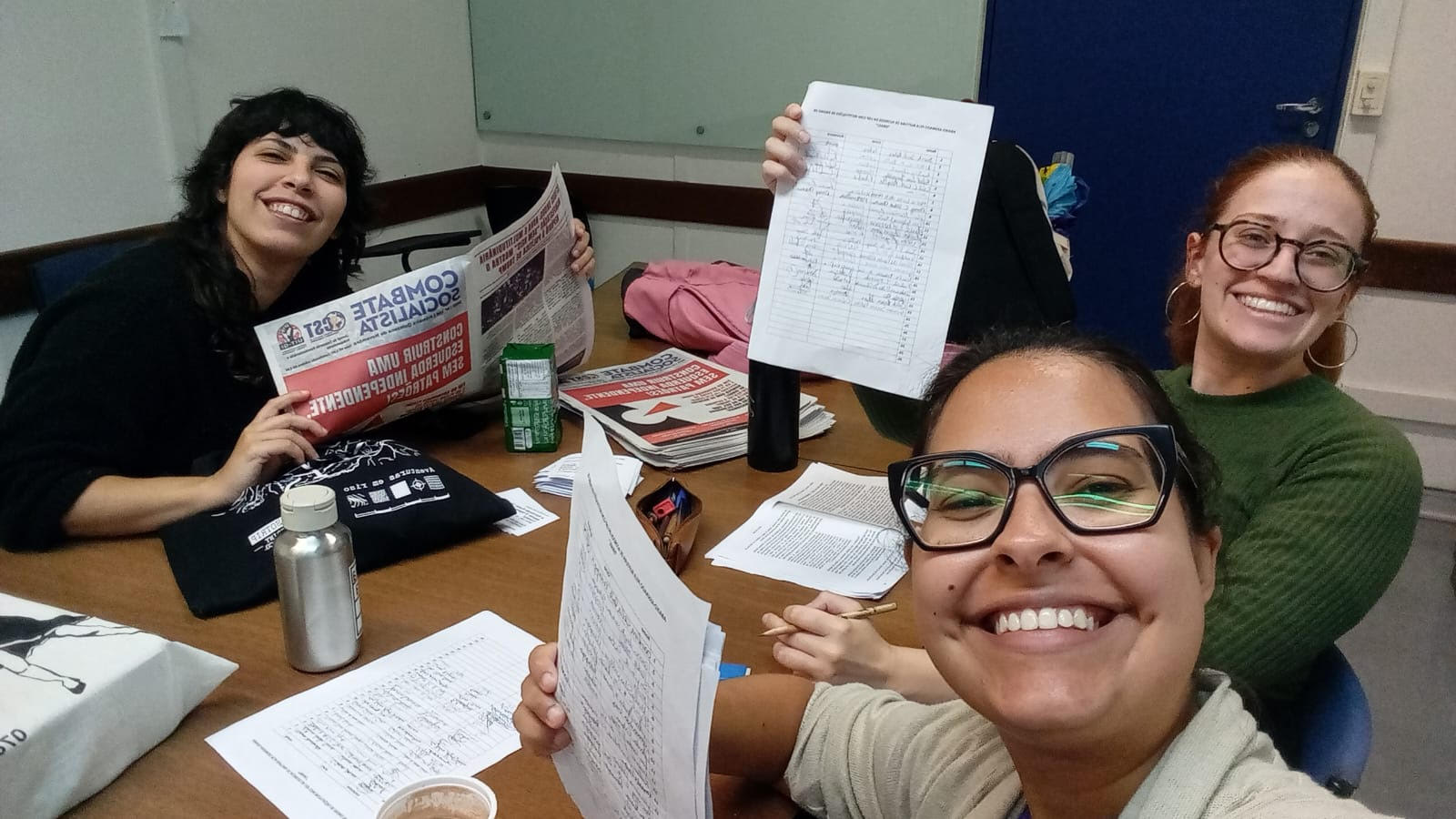 Nas últimas semanas, fizemos passagens em sala nos cursos de graduação e pós da FFLCH, Educação e Astronomia para que todes pudessem assinar. A maioria esmagadora dos estudantes está orgulhoso da decisão da congregação, fruto de nossa mobilização, e quer as instituições israelenses fora da USP. Precisamos de ainda mais assinaturas! Nas próximas semanas estaremos presentes nos cursos que ainda não passamos e em outros horários e chamamos você a passar em sala e conversar com os seus colegas com a gente! Se quiser recomendar cursos e turmas para que passemos é só entrar em contato pelas nossas redes sociais. Vamos à Luta!
