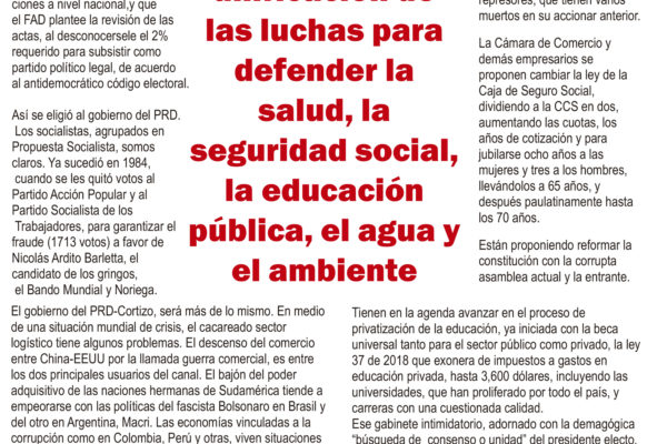 Publicado em maio de 2019, pela Proposta Socialista, seção da UIT-QI no Panamá: A juventude panamenha deve saber que os governos dos últimos 30 anos, de Guillermo Endara até Juan Carlos Varela, fazem parte do regime que, com o crime de centenas ou milhares