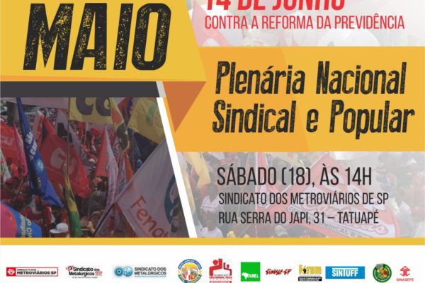 Do site da CSP-CONLUTAS: Na tarde desta segunda-feira (27), o setor de transportes realizou uma plenária no Sindicato dos Metroviários de SP, para discutir de que forma participará da Greve Geral de 14 de junho. Tudo indica que, a depender dos metroviários, rodoviários, ferroviários